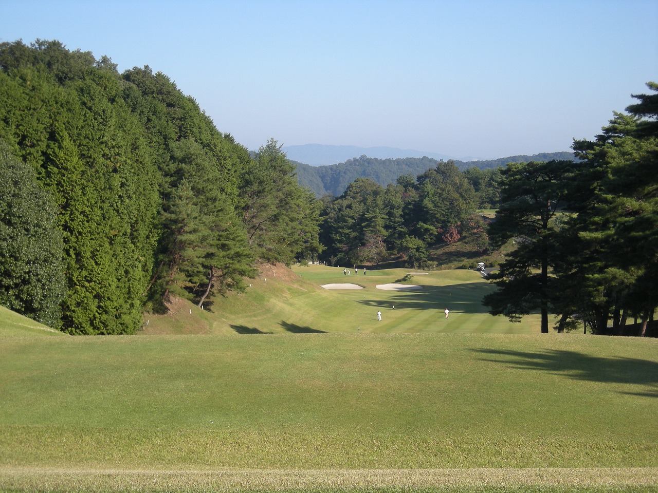グリーンハイランドCCの東コース3番の写真です。ここは342ヤード PAR4のミドルホールで、そこそこ距離があります。打ち下ろしで左は山。右は狭く見えますが松の木を超えると広くなっているので思い切ってドライバーが振れると思いますよ。
