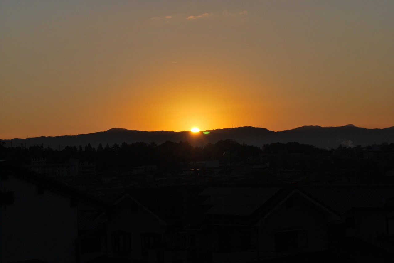 この間、自宅のベランダからきれいな日の出が見れたので写真に撮りました。ちょうど寒い日なので、空気が澄んでおり、まわりに雲がなかったのでうまく撮れました。起きてまもなくだったのでちょうどタイミングがよかったです。