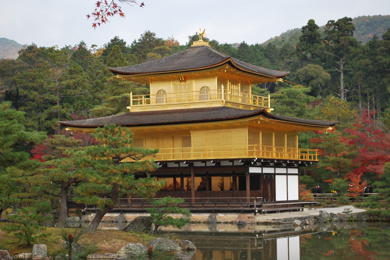 金閣寺は正式名称を鹿苑寺といい、相国寺の塔頭寺院の一つ。舎利殿「金閣」が特に有名なため一般的に金閣寺と呼ばれているようです。手前の池に映る風景も最高ですね。当日は紅葉も盛りで、開館9時に行ったのですがすでに長い行列ができており、特に修学旅行生がたくさん来ていました。今の修学旅行は数人のグループで個別に行動するようなので、拝観料は個人で払ってました。