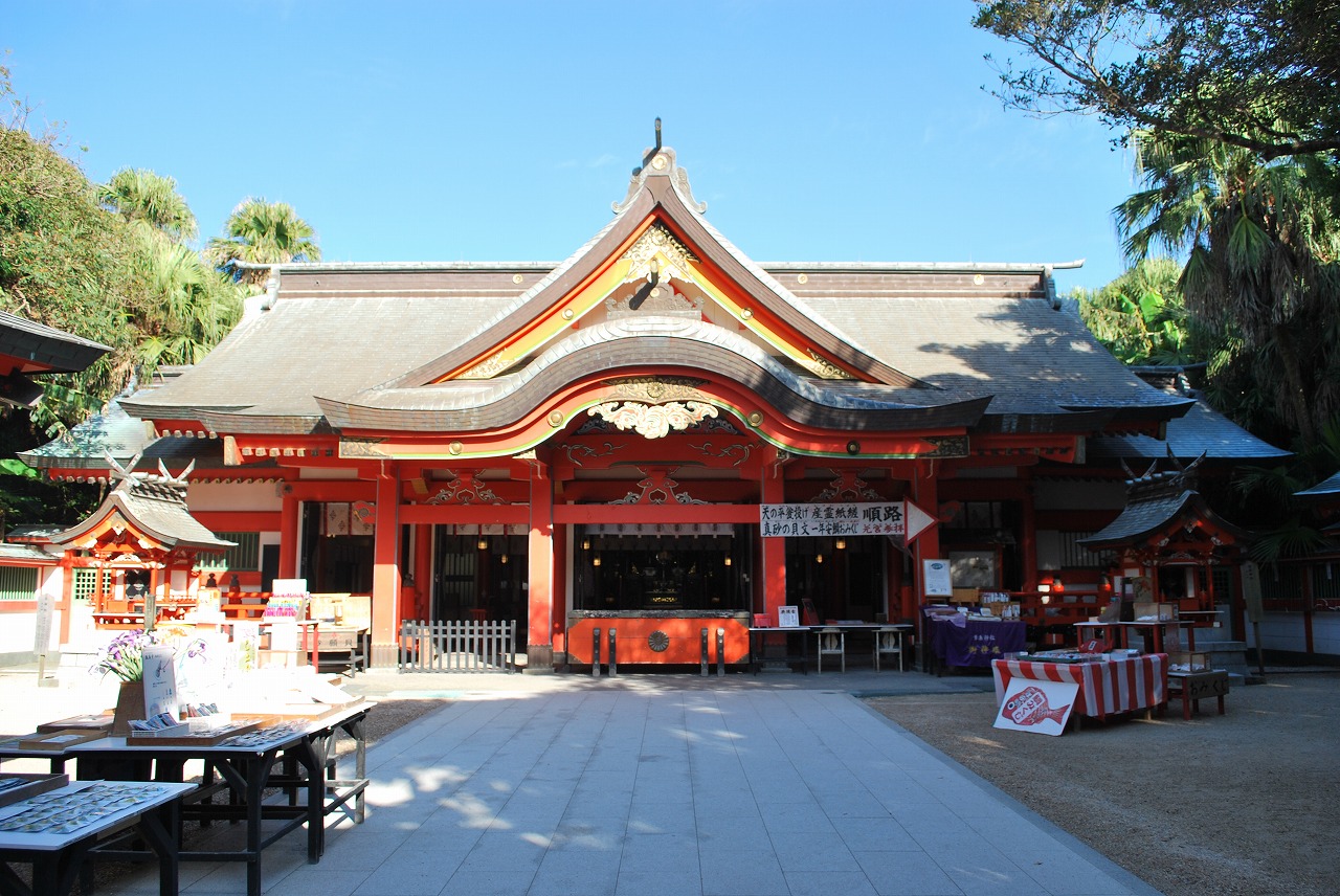 宮崎県の日南海岸沿いの青島神社の写真です。平日に行ったので人はまばらで、最寄りの駅から、青島神社に行く人は私1人でした。小さな島で小さな橋で陸続きになっており、小さな神社でしたが作りは立派な感じがしました。上空から見た写真がホームページにありました。結構いい景色ですね。