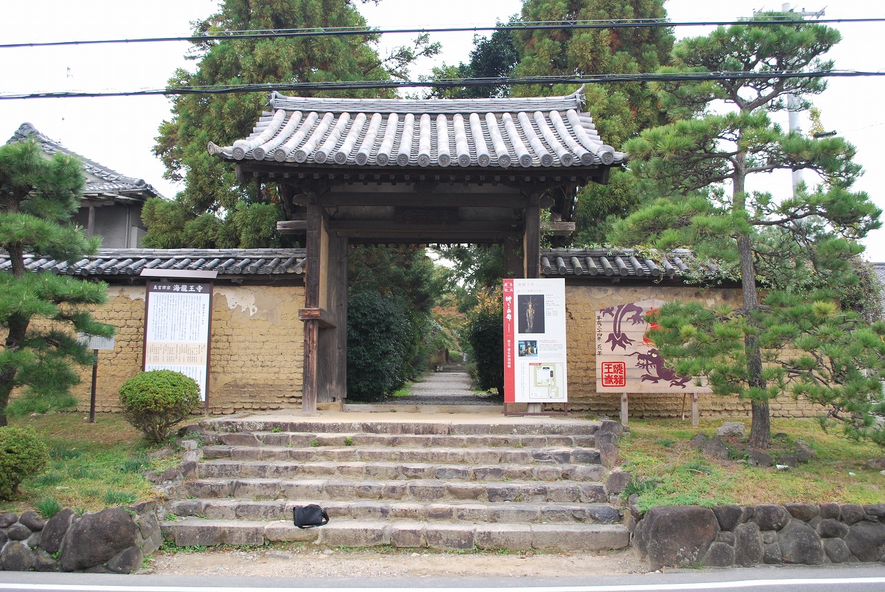 奈良市の法華寺の近くにある海龍王寺の正門の写真です。本堂は奈良時代に建っていた深い軒の出と勾配の緩い屋根、それに堂内の柱配置が整然として、奈良時代の仏堂とよく似ている点が特徴としてあげられます。建立は1665年頃とも伝えられ、江戸時代の建物でありながら、古い伝統建築の様式が好まれたと思われる奈良の地域性を見ることができて貴重です。11月は11面観音像が特別に拝観でき、特別拝観料は大人500円、中高生300円、小学生100円となっています。