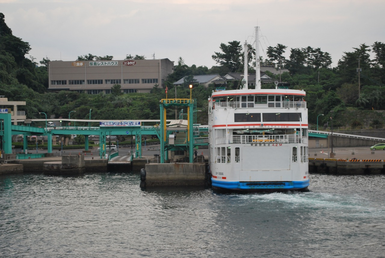 先日、桜島フェリーに乗ってきました。鹿児島港から桜島まで約15分で結び、乗船料は片道150円と格安で約10~15分おきに運行されています。24時間運航ということで地元の方や観光客をたくさん乗せていました。ちゃんと地元の顔になって頑張っているようでした。船から見る桜島は陸地から見るのと違い、迫力満点です。