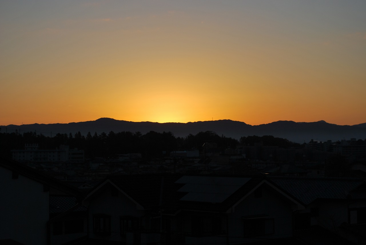 この間、自宅のベランダからきれいな日の出が見れたので写真に撮りました。ちょうど寒い日なので、空気が澄んでおり、まわりに雲がなかったのでうまく撮れました。起きてまもなくだったのでちょうどタイミングがよかったです。