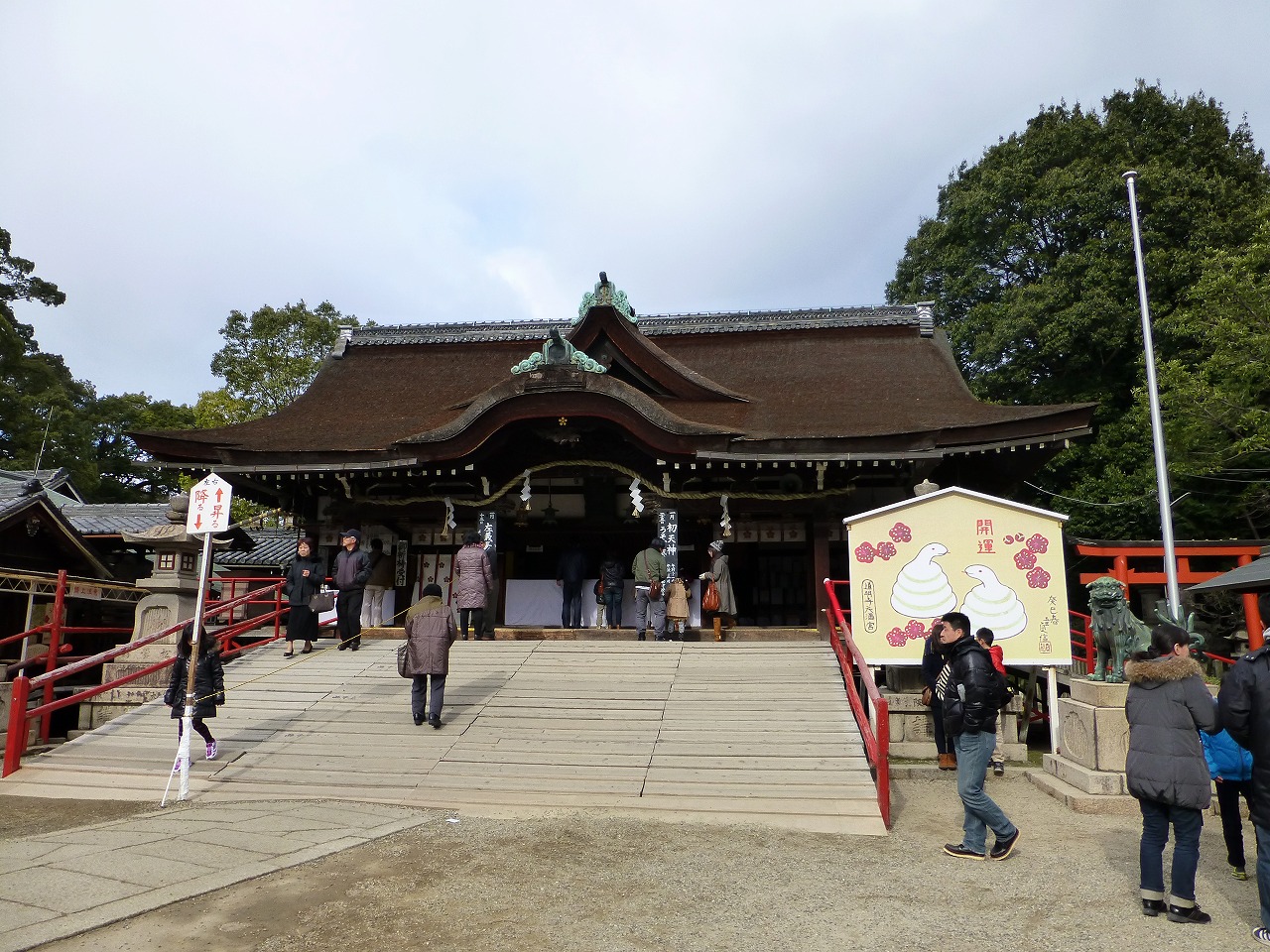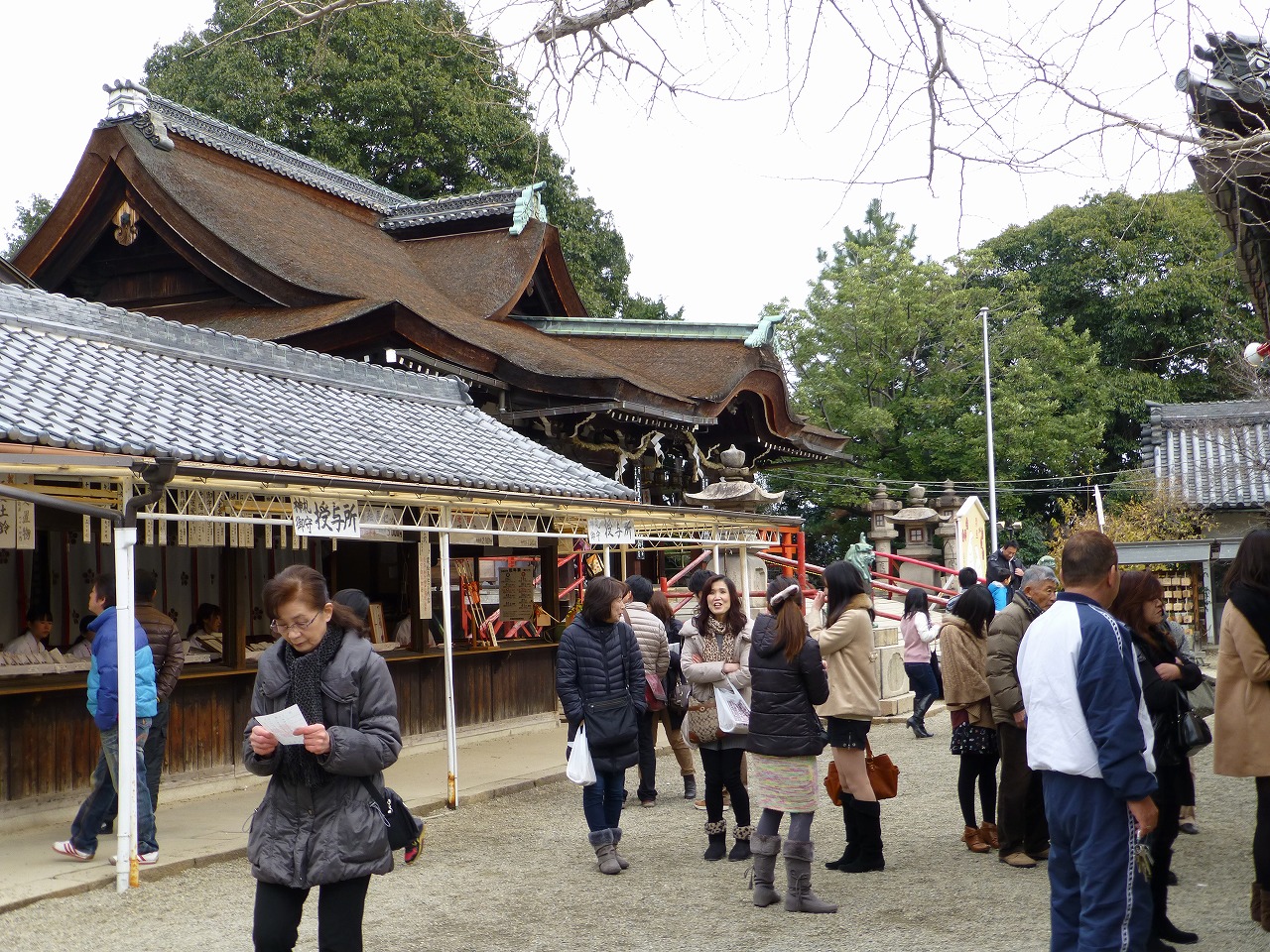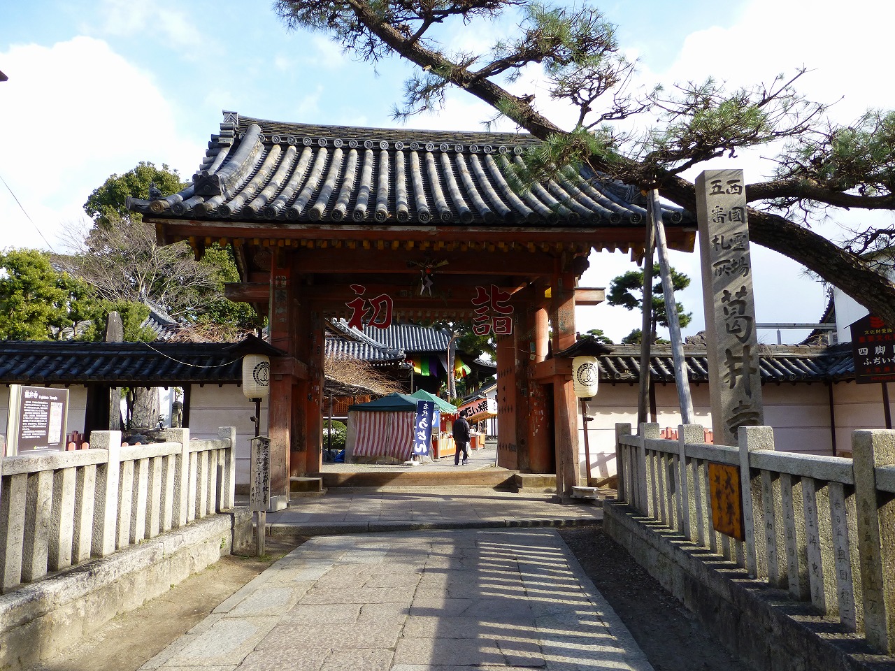 道明寺天満宮の写真です。近鉄道明寺駅から徒歩約5分にあります。明治5年に移築され今の位置にあります。正門からいろいろな屋台が出て非常に多くの人が参拝されていました。学業成就・受験合格、結婚式、初宮詣、安産祈願、厄除け、家内安全、交通安全、七五三まいり、地鎮祭等々の祈願が常時行われています。