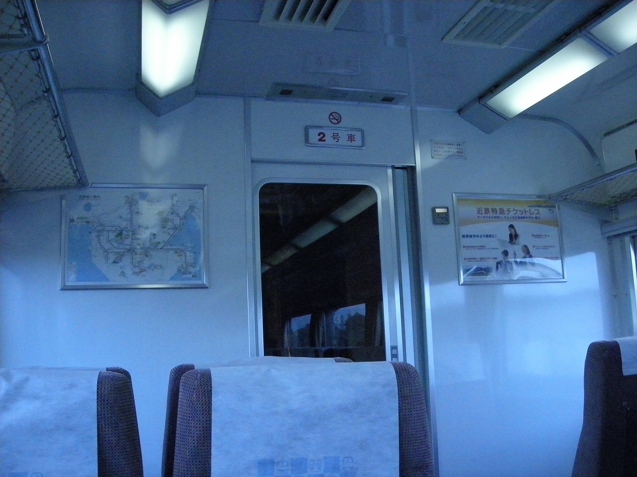 ある団体の貸しきり電車で行くなし狩りツアーに行ってきたときの、乗った電車の写真です。近鉄郡山駅での写真です。めったに見ることができないので、貴重だと思い撮りました。あおぞら号といい、修学旅行の学生さんがよく使う電車だそうです。中は、特急電車のように豪華な座席がありとても快適でした。